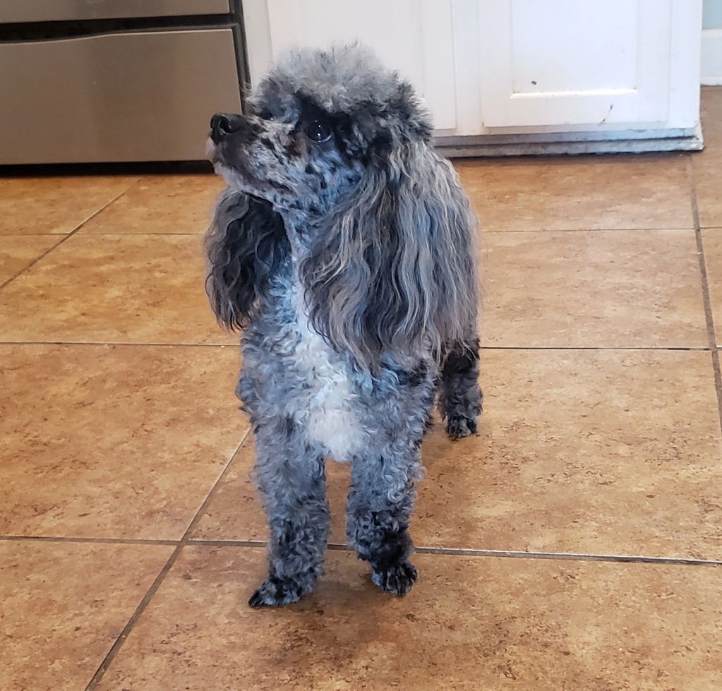 Blue - AKC/CKC black merle toy poodle. parents dna tested by paw print genetics. All clear